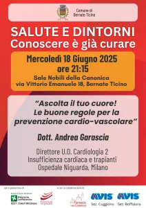 INCONTRO DAL TITOLO “ASCOLTA IL TUO CUORE! LE BUONE REGOLE PER LA PREVENZIONE CARDIO-VASCOLARE” che fa parte del ciclo di incontri “SALUTE E DINTORNI – CONOSCERE E’ GIA’ CURARE”.